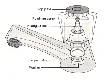 A water tap is a device for turning on and off the flow of water. Its most important parts are a rod with a handle on the top and a washer which is fixed to the bottom of the rod. The metal parts of a water tap are usually made of brass because brass resists corrosion. The washer is made of a flexible material such as rubber or plastic.